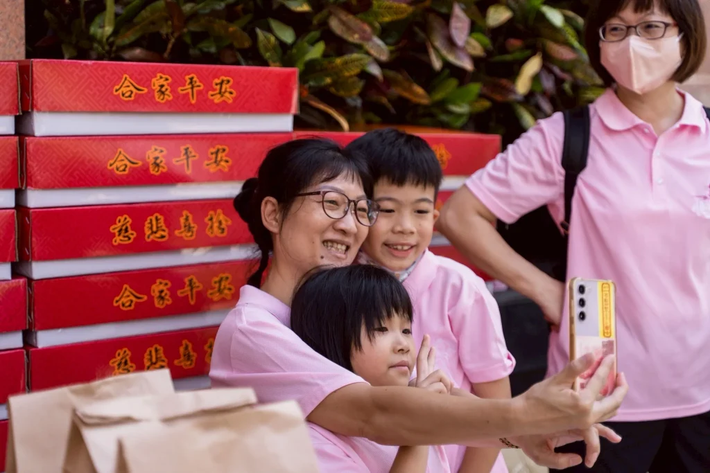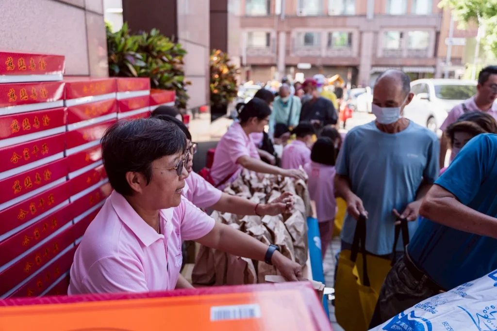 志工中有父母帶著孩子一起奉獻、學習「施比受更有福」; 志工們在烈日下搬運、微笑、擁抱; 長者的感謝、孩子的笑容、每一聲「阿彌陀佛」迴盪耳畔。