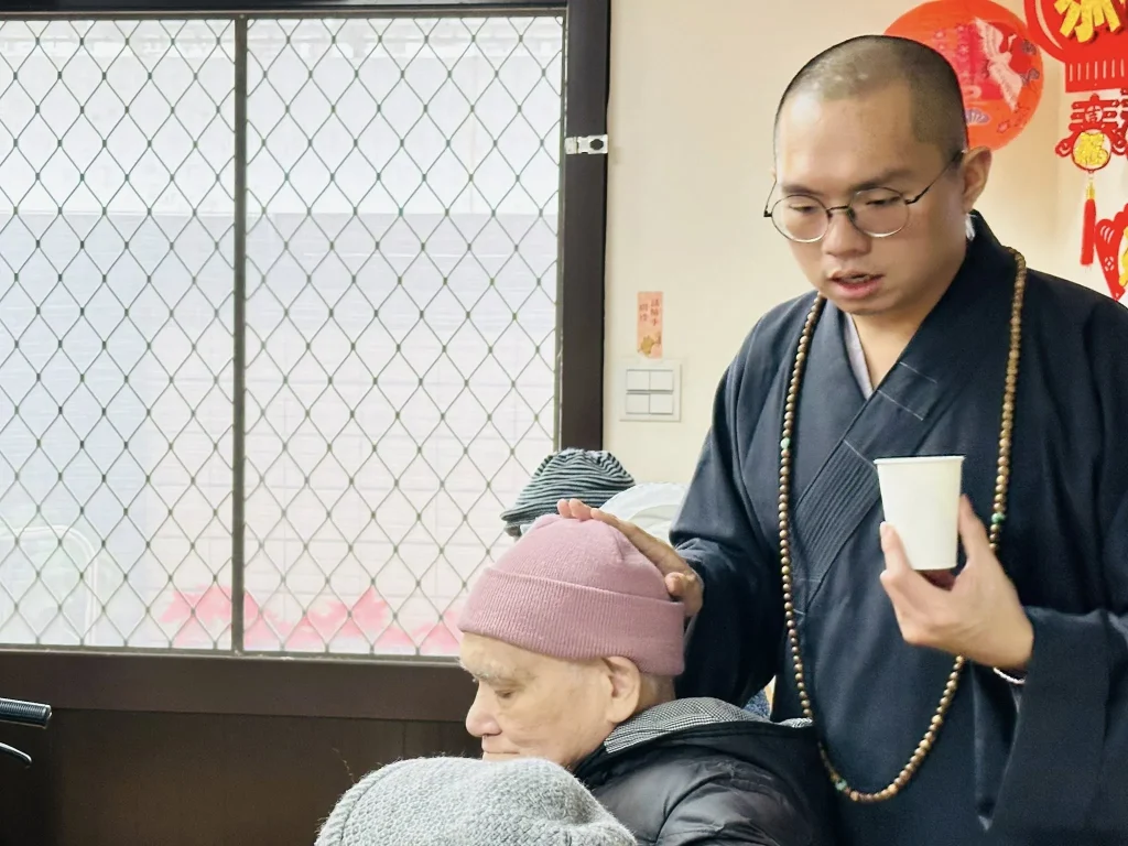 師父以慈悲與耐心,為長輩開示:「年老不是等著生命的離去,而是修行真正開始的時刻」,原來現在的每一天,都還來得及為自己種下佛法的種子,在溫柔而堅定的引導中,讓長輩的心一點一點安住下來。